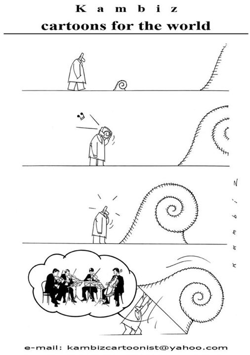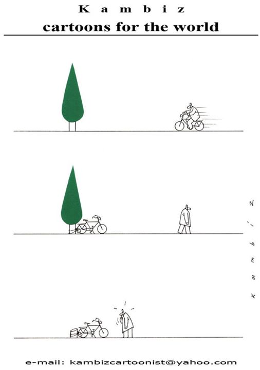 • Author of several books on illustration and caricature, among them: “No Comments” (Iran), “Contemporary Satirists in Iran” (Austria), “Kambiz’ Book” (Italy), “The World is My Home” (France), “Diaries of Angels”, “Don’t Bother the Labouring Ant”, “Had da Vinci Seen Me”, “Laughing Olympics”, “Scratch Symphony” and several other books which are to be published